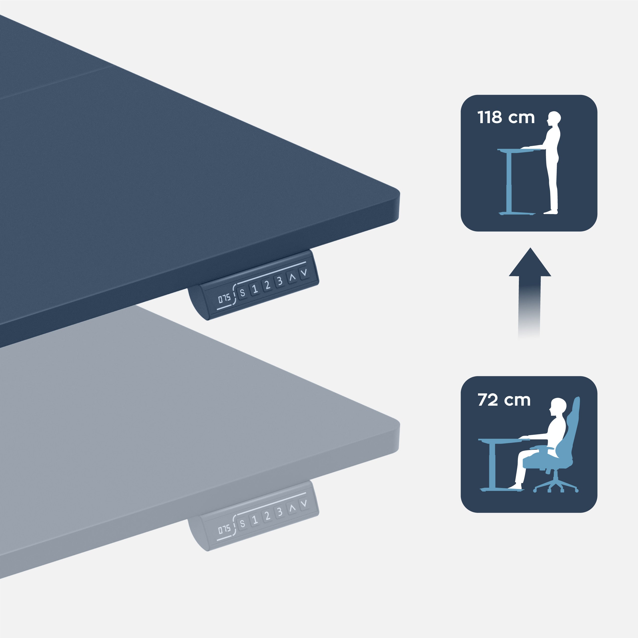 Szeroki zakres regulacji wysokości blatu, od 72 cm do 118 cm, umożliwia dopasowanie biurka do każdego wzrostu. Dzięki temu Leader 7.6 świetnie sprawdza się również wtedy, gdy dzielisz stanowisko pracy z innymi użytkownikami.